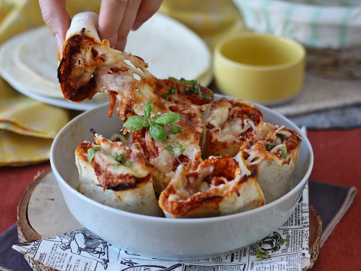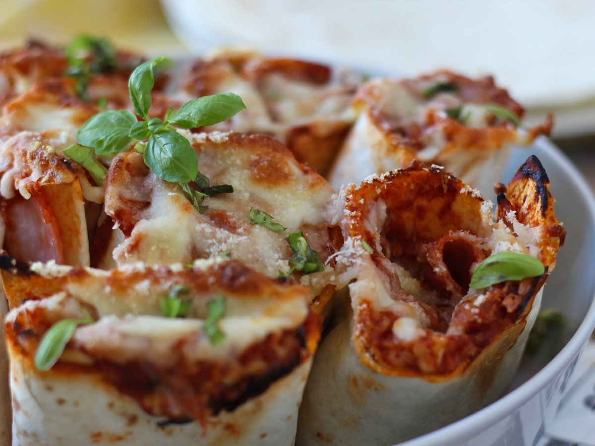 Avec des tortillas et un peu d’imagination, préparez un plat à partager qui fait toujours son petit effet! Après les quiches tortillas, aujourd'hui on les transforme en roulés saveur pizza : une bonne couche de coulis de tomate assaisonné, de la mozzarella fondante, quelques morceaux de jambon et une touche de parmesan. Hop, on roule, on enfourne, et le tour est joué! Le résultat? Des bouchées croustillantes, gourmandes, et surtout super conviviales. Parfait pour un apéro qui change ou un dîner sur le pouce. Ajoutez un peu de basilic frais pour la touche finale, et régalez-vous :)