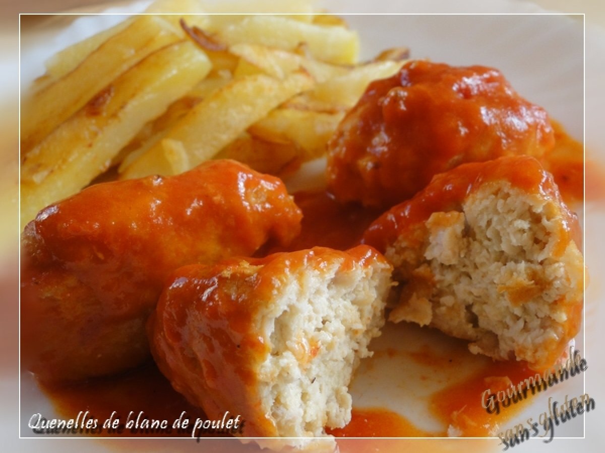 Quenelles de blanc de poulet, sauce tomate au paprika Platfacile22 min412 Kcal Envoyer cette recette à un ami Imprimer cette page Poser une question à l'auteur Publier votre photo de cette recette Ingrédients 2 300 g de blanc de poulet 1 oeuf 1 belle cuillère à soupe de farine de riz complet sel poivre 30 cl de coulis de tomate paprika doux un peu d'huile Coût estimé: 4.83Euros€ (2.41€/part)