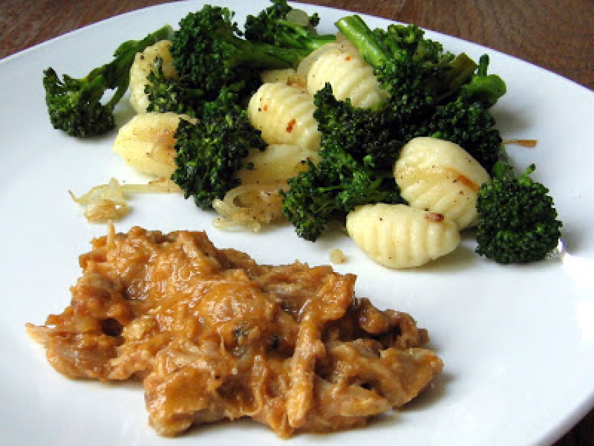 Queue de veau dans une sauce au gorgonzola et aux jeunes pousses de brocoli