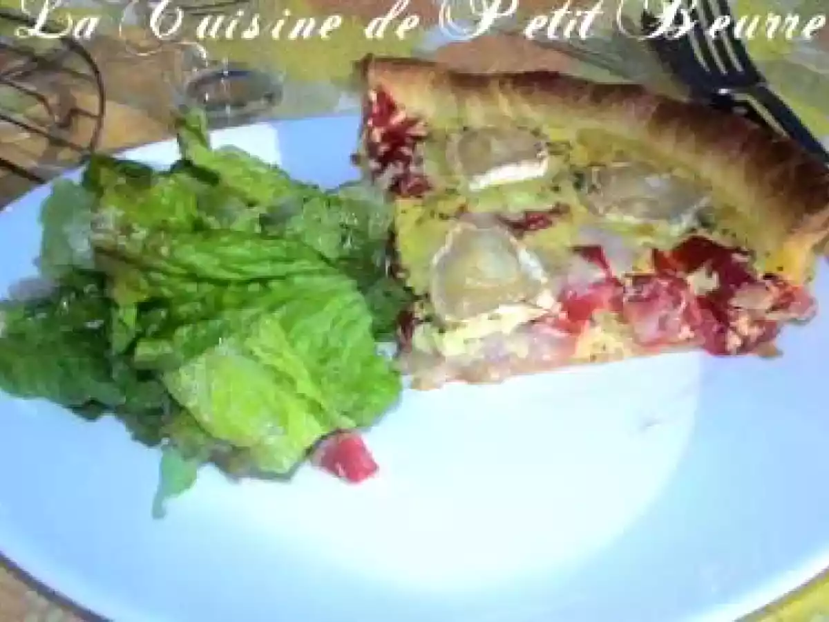 Quiche jambon-chèvre-poivrons Platfacile45 min Envoyer cette recette à un ami Imprimer cette page Poser une question à l'auteur Publier votre photo de cette recette Ingrédients 4 Ingrédients : 1 pâte feuilletée 1 bûche de fromage de chèvre des poivrons grillés en bocaux 3 tranches de jambon blanc 20 cl de crème liquide 2 oeufs poivre, paprika et curry
