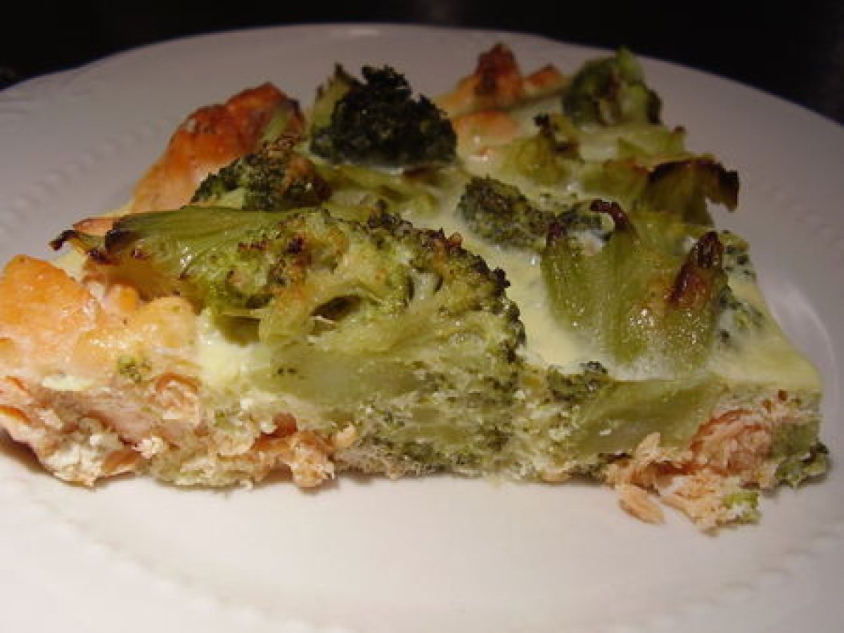 Quiche sans pâte saumon-brocoli.
