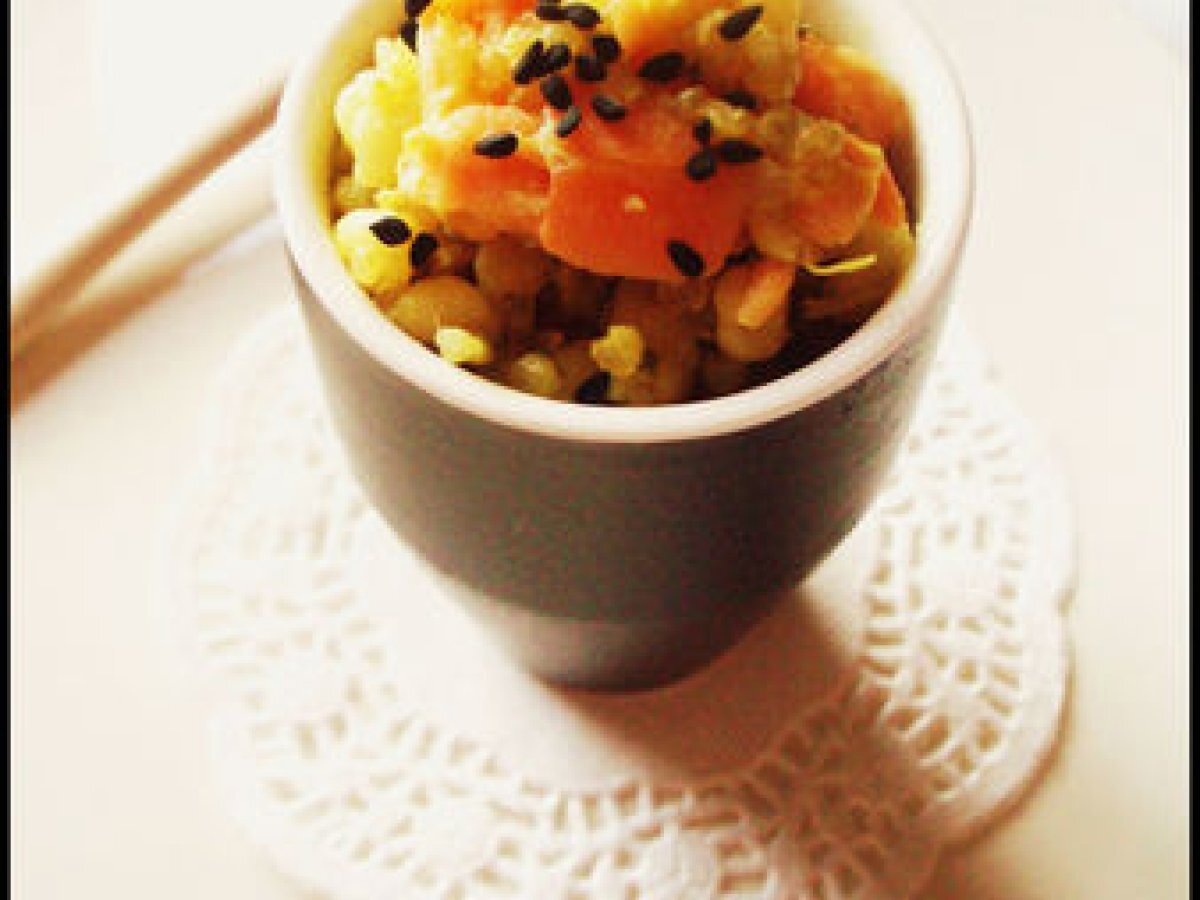 Un petit plat sans prétention fait avec les moyens du bord un soir de flemme. Même pas besoin de touiller. Finalement, le mélange du quinoa, de l'ebly, et de la nigelle s'est révélé délicieux.