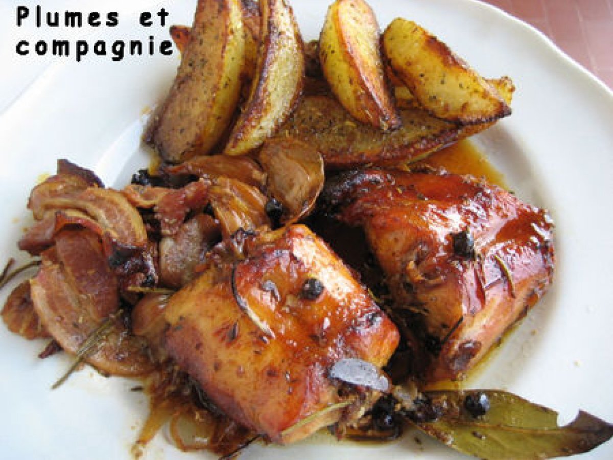 Râbles de lapin caramélisés à la bière at au genièvre PrécédentSuivant Platfacile1 h 20 m2767 Kcal Envoyer cette recette à un ami Imprimer cette page Poser une question à l'auteur Publier votre photo de cette recette Ingrédients 2 4 morceaux de lapin 50 cl de bière 1 cuillère à soupe de genièvre 3 tranches de lard fumé 6 gousses d'ail 4 branches de romarin 6 feuilles de laurier Sel, poivre