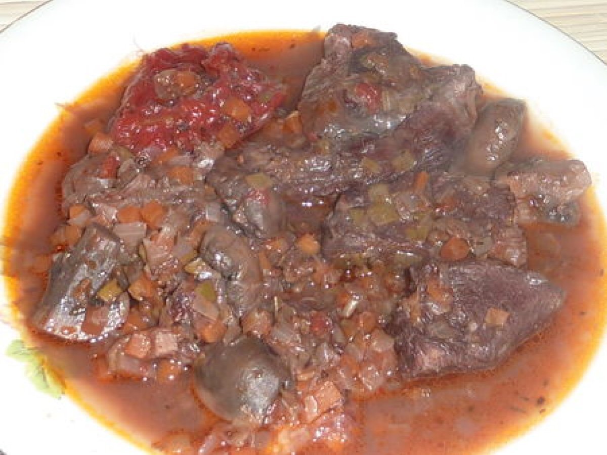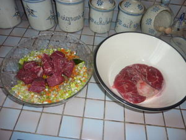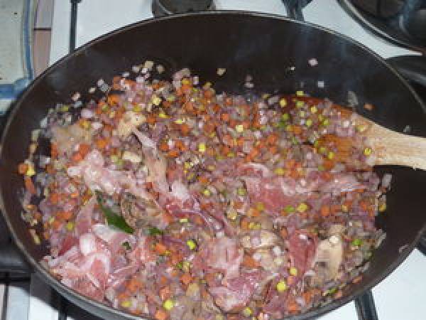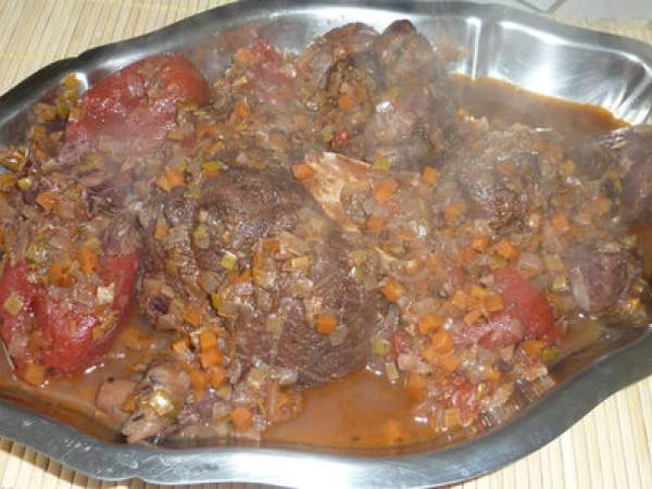 Ragoût de boeuf à l'italienne PrécédentSuivant Platfacile4 h 30 m Envoyer cette recette à un ami Imprimer cette page Poser une question à l'auteur Publier votre photo de cette recette Ingrédients 4 450 g de gîte de boeuf (paleron) 1 bon jarret de boeuf 1 gros morceau de pancetta 2 os à moelle 2 oignons 1 gousse d'ail 1 échalote 3 carottes 1 poireau 1 boîte de tomates roma 75 cl de vin rouge 1 croûte de parmesan assez grande (1 morceau) quelques champignons 1/4 de zeste d'un citron laurier persil thym sel poivre