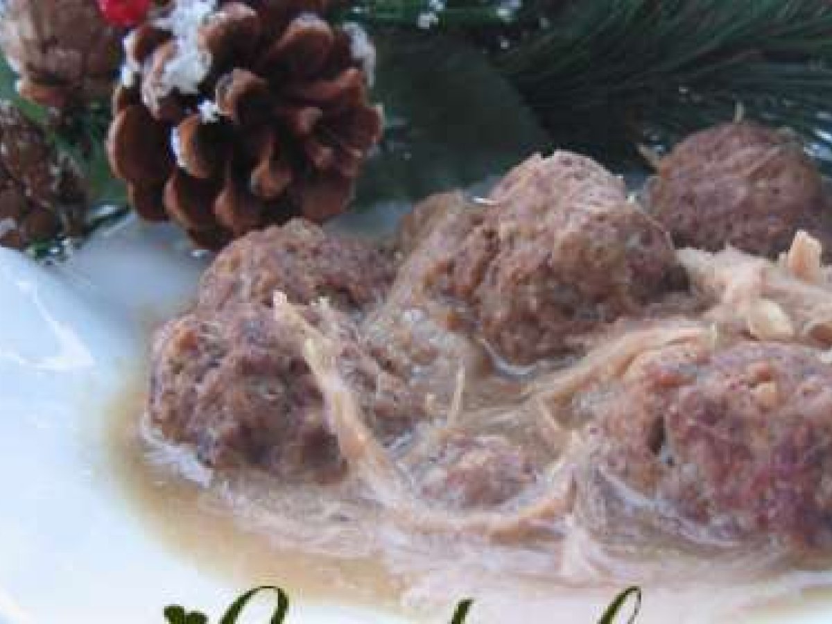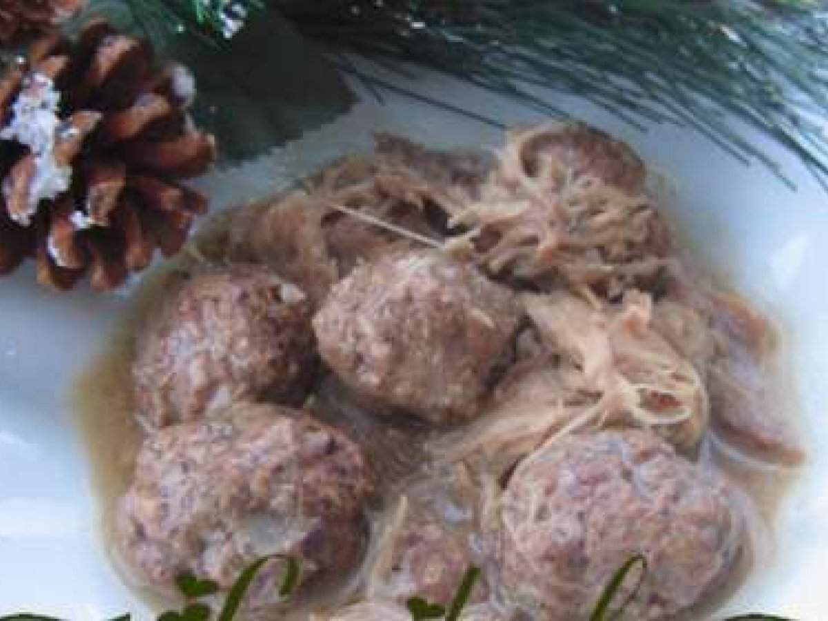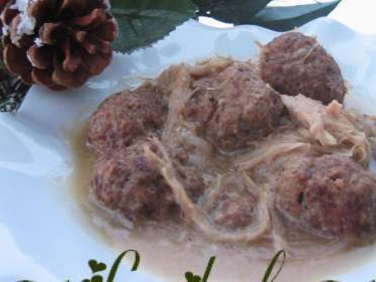 Ragoût de boulettes et de pattes de cochon PrécédentSuivant Platmoyen2 h 20 m Envoyer cette recette à un ami Imprimer cette page Poser une question à l'auteur Publier votre photo de cette recette Ingrédients 6 4 pattes de cochon 2 tranches de pain coupées en dés (moi chapelure italienne) 1/2 tasse (125 ml) de lait (moi omis) 1 1/2 lb (750g) de porc haché 1/2 lb (250g) de boeuf haché 1 oignon émincé 1/4 de c. à thé (1ml) de clou de girofle moulu 1/4 de c. à thé (1ml) de cannelle moulue 1/4 de c. à thé (1ml) de moutarde sèche Sel et poivre, au goût 1 c. à soupe (15ml) d'huile végétale (moi omis car cuit boulette dans le four) 5 c. à soupe (75ml) de farine grillée