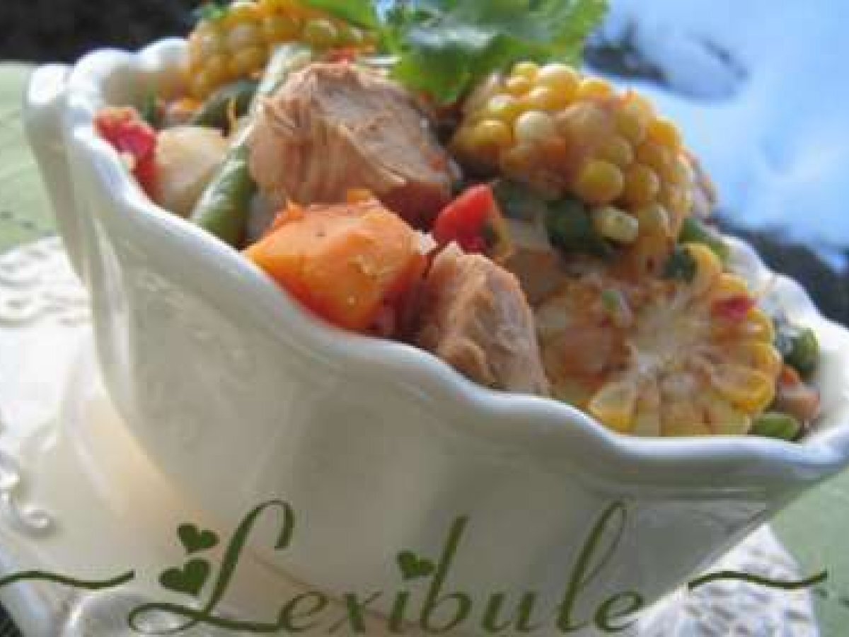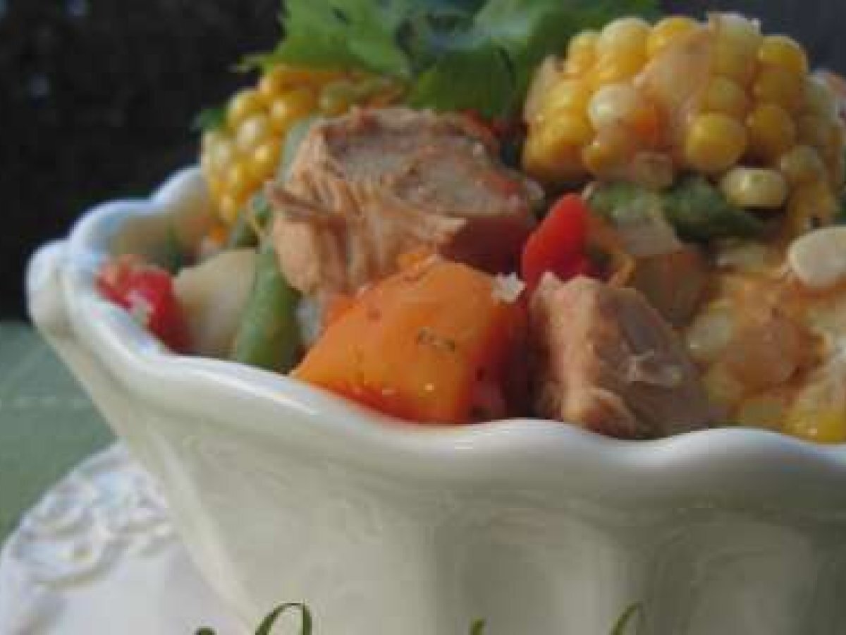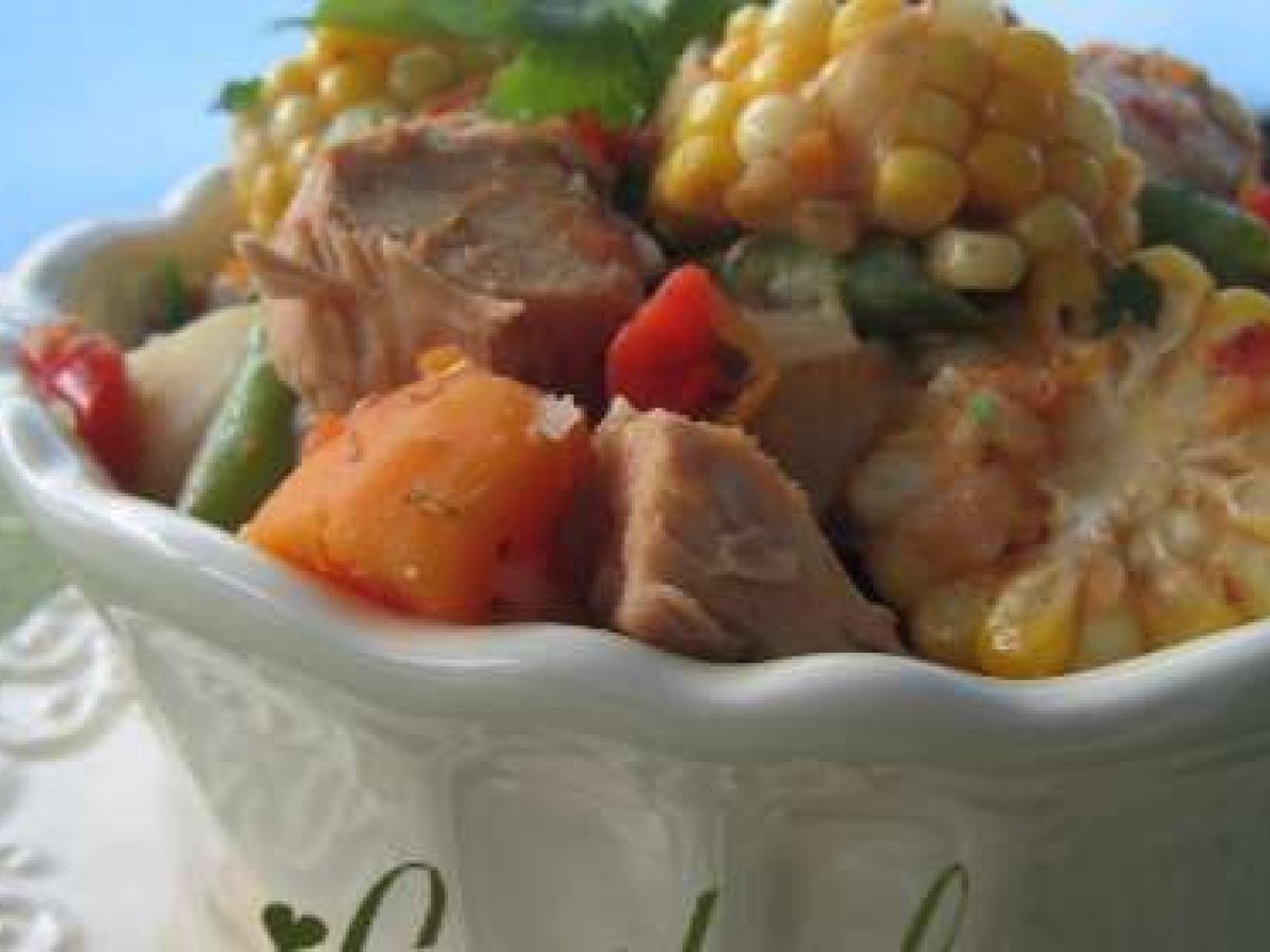 Ragoût de poulet et de légumes PrécédentSuivant Platfacile1 heure Envoyer cette recette à un ami Imprimer cette page Poser une question à l'auteur Publier votre photo de cette recette Ingrédients 4 ¼ tasse (60 ml) dhuile dolive 1 ¼ lb (600g) de filets de poitrine de poulet en morceau de 1po (2,5 cm) 1 oignon, tranché 2 gousses dail, broyées 2 piments jalapenos , épépinés et en petits dés (moi jai remplacé par 2 c. à thé de Sambal Oelek) 1 poivron rouge, épépiné et en dés 1 c. à thé (5ml) de cumin moulu 1 c. à thé (5ml) de coriandre moulue 2 c. à thé (10ml) dorigan séché 2 tomates, en dés (moi épépinées) 2 tasses (500ml) de bouillon de poulet 2 pommes de terre, pelées et en dés 10 ½ oz (300g) de patate douce, pelée et en dés 5 oz (150g) de haricots verts tranchés 1 épi de maïs, épluché et tranché ¼ tasse (60ml) de coriandre fraîche, hachée Sel et poivre noir fraîchement moulu