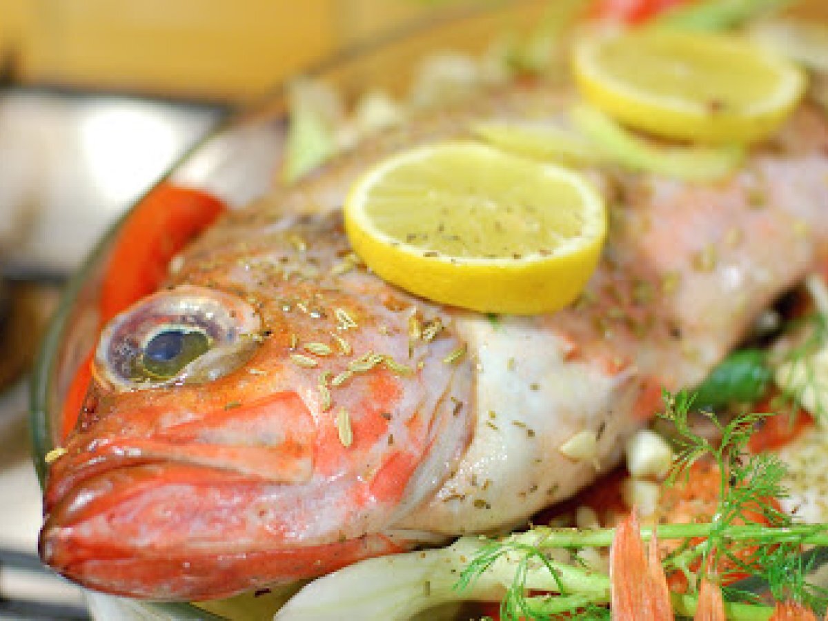 Rascasse au four sur lit de fenouil PrécédentSuivant Platfacile55 min Envoyer cette recette à un ami Imprimer cette page Poser une question à l'auteur Publier votre photo de cette recette Ingrédients 2 1 belle rascasse rouge de 1,5 kg un citron un bulbe de fenouil graines de fenouils un gros oignon 2 tomates bien rouges 12 cl de vin blanc sec deux gousses d'ail 5 cuillères à soupe d'huile d'olive