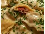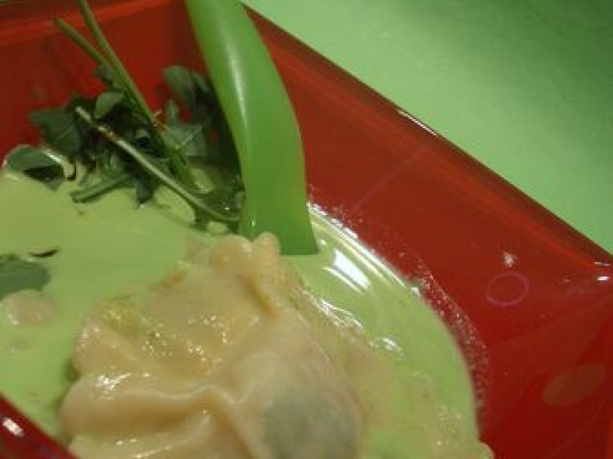 Ravioles de saint-jacques, crème de roquette au poivre long d'indonésie PrécédentSuivant Platfacile32 min Envoyer cette recette à un ami Imprimer cette page Poser une question à l'auteur Publier votre photo de cette recette Ingrédients 4 Noix de Saint Jacques : 12 pièce(s) Feuille(s) de pâte à raviole : 24 pièce(s) Fleur de sel : 6 Pincée(s) Poivre long : 2 pièce(s) Estragon : 1/4 botte(s) Cube(s) de bouillon de volaille : 1 pièce(s) Crème liquide entière : 20 centilitre(s) Eau : 1/2 Litre(s) Roquette : 200 gramme(s) Jaune(s) d’oeuf : 2 pièce(s) Réduction de vinaigre Balsamique : 5 centilitre(s) Moulin à poivre : 6 Tour(s) Sel fin : 6 Pincée(s)