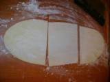 la passer ensuite dans la machine à pâte au n° 2, on obtient une lanière un peu grosse on coupe en 2 ou en 3, on saupoudre les 2 côtés de maïzena.