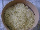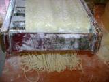 Une fois secs (mais pas trop, si non ça devient cassant) on passe une dernière fois dans la machine mais du côté spaghettis pour avoir la forme de la rechta.