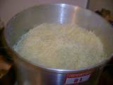 Puis on met dans une grandre terrine, et on défait un peu la rechta , on l'arrose délicatement d'un mélange d'eau, d'huile et de sel en soulevant et, on la laisse absorber. On repasse à la vapeur et on refait l'opération 2 fois de suite puis on enduit de beurre.- Faire revenir la viande dans le smen ou l'huile avec l'oignon râpé et les épices en remuant puis, rajouter les pois chiches, arroser d'eau et laisser cuire. A mi-cuisson rajouter les légumes ( navets ou courgettes) coupés en 4 et poursuivre la cuisson, vérifier l’assaisonnement et éteindre.