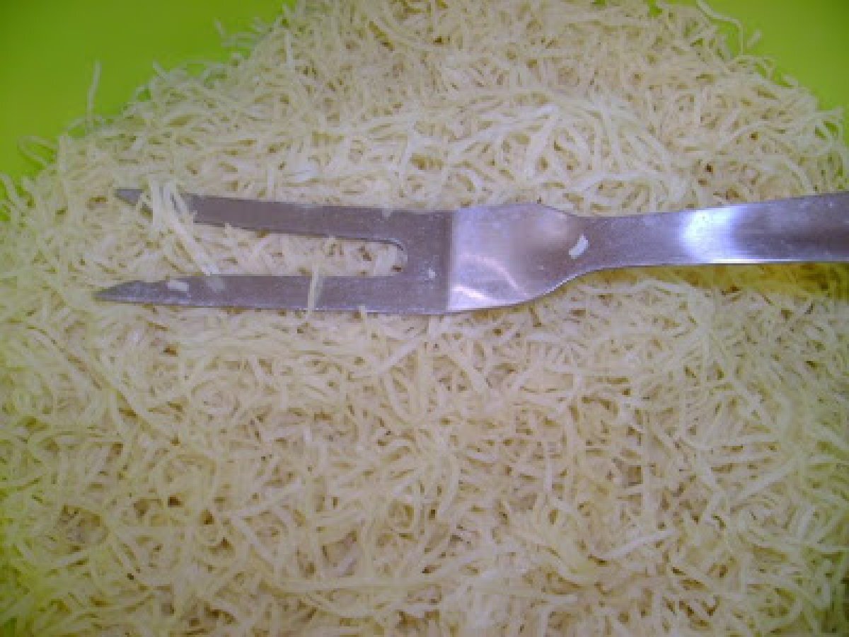 On Passe à travers un tamis pour enlever l'excés d'amidon.