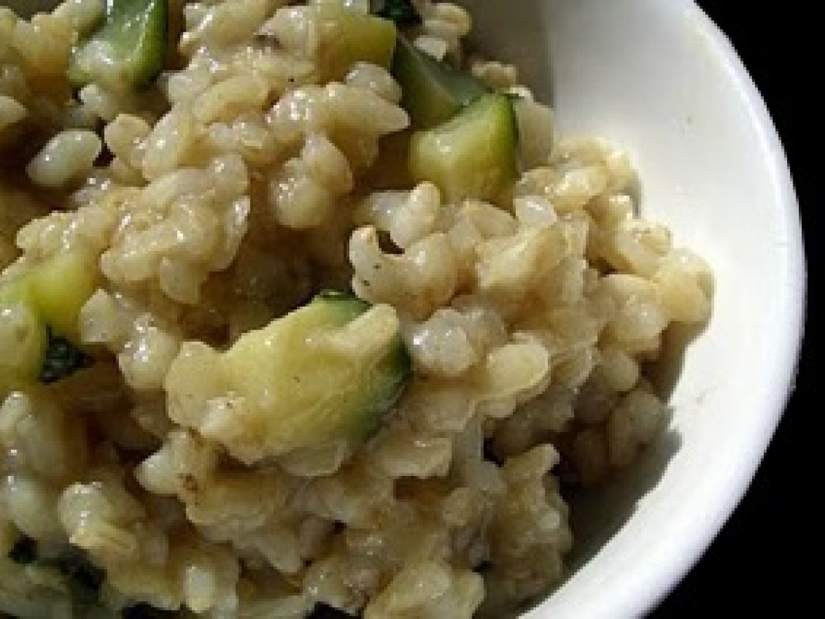 Risotto allégé au riz complet, courgettes, poivrons & parmesan Platmoyen2 h 30 m425 Kcal Envoyer cette recette à un ami Imprimer cette page Poser une question à l'auteur Publier votre photo de cette recette Ingrédients 4 300 g de riz rond complet bio 1/2 verre de vin blanc sec 1 grosse courgette 1/2 poivron jaune en dés 1 bouillon kub huile d'olive et basilic 1 cc de persil haché 1 filet d'huile d'olive 1 oignon émincé 3 CS de crème fraiche épaisse à 15% MG 2 CS rases de parmesan sel & poivre Coût estimé: 2.91Euros€ (0.73€/part)