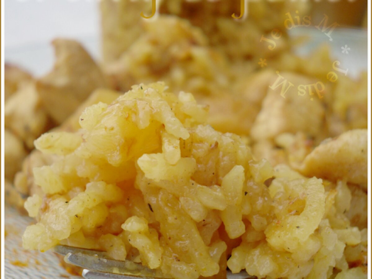 Risotto ananas et curry de poulet Platfacile40 min390 Kcal Envoyer cette recette à un ami Imprimer cette page Poser une question à l'auteur Publier votre photo de cette recette Ingrédients 2 1/2 l de bouillon 2 escalopes de poulet 1 gros oignon 1/2 Cuillères à café de gingembre 1/2 Cuillères à café de curry 120 g de riz 50 g de jus d'ananas 100+50 g d'ananas en morceaux 1 petit verre d'eau