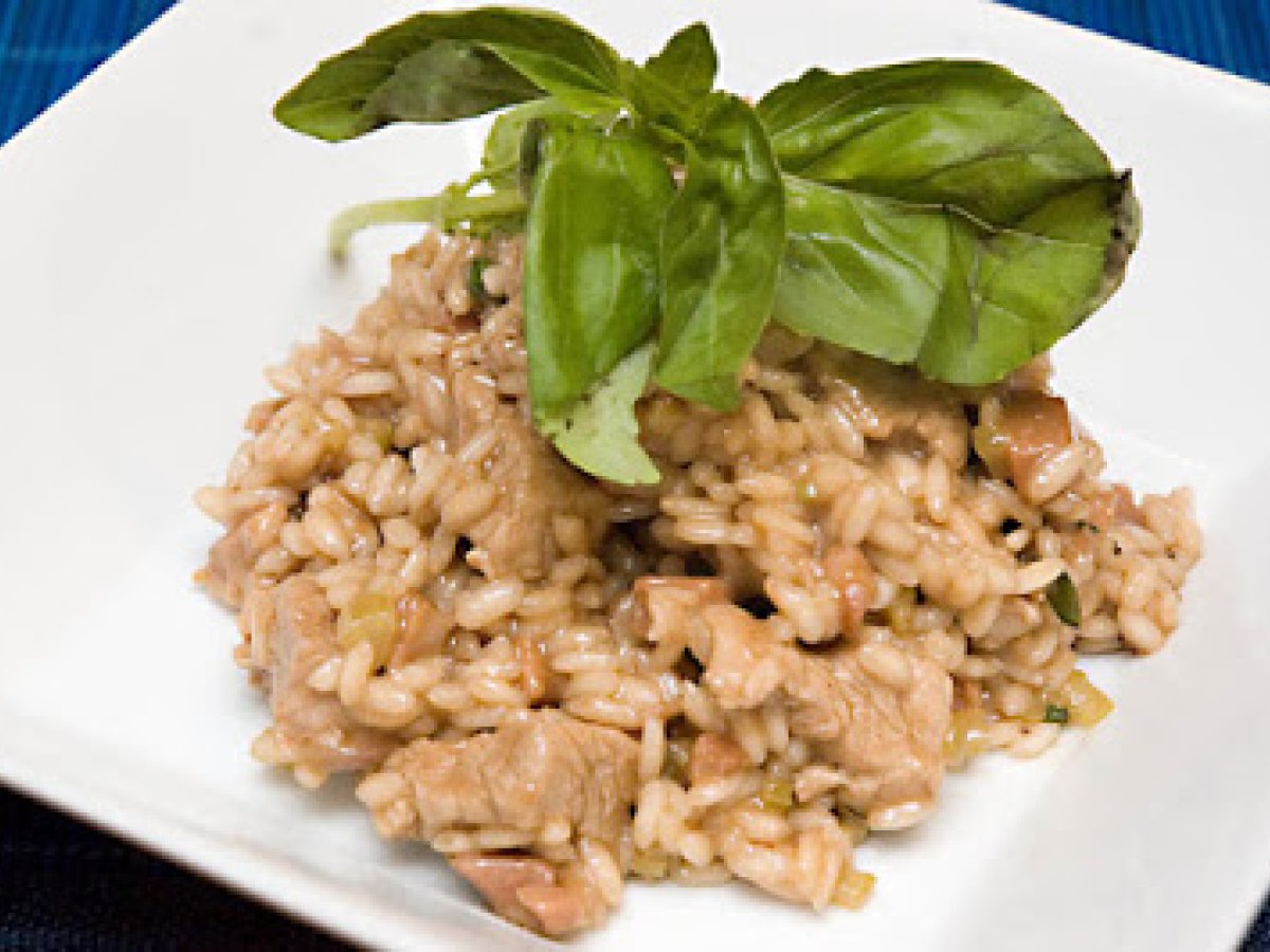 Risotto au filet de porc et au prosciutto, parfumé au vinaigre balsamique votez maintenant Platfacile35 min1041 Kcal Envoyer cette recette à un ami Imprimer cette page Poser une question à l'auteur Publier votre photo de cette recette Ingrédients 4 ½ tasse d'oignon rouge haché ½ tasse de céleri haché 3 cuillères à soupe d'huile d'olive ou gras de canard 2 tasses de riz arborio 1/3 tasse de vinaigre balsamique 500 g de filet de porc coupé en petits dés 4 tasses de bouillon de poulet bouillant 2 tasses d'eau bouillante 150 g de prosciutto coupé en petits carrés 2 cuillères à soupe de parmesan râpé ¼ tasse de basilic frais, ciselé finement Poivre au goût