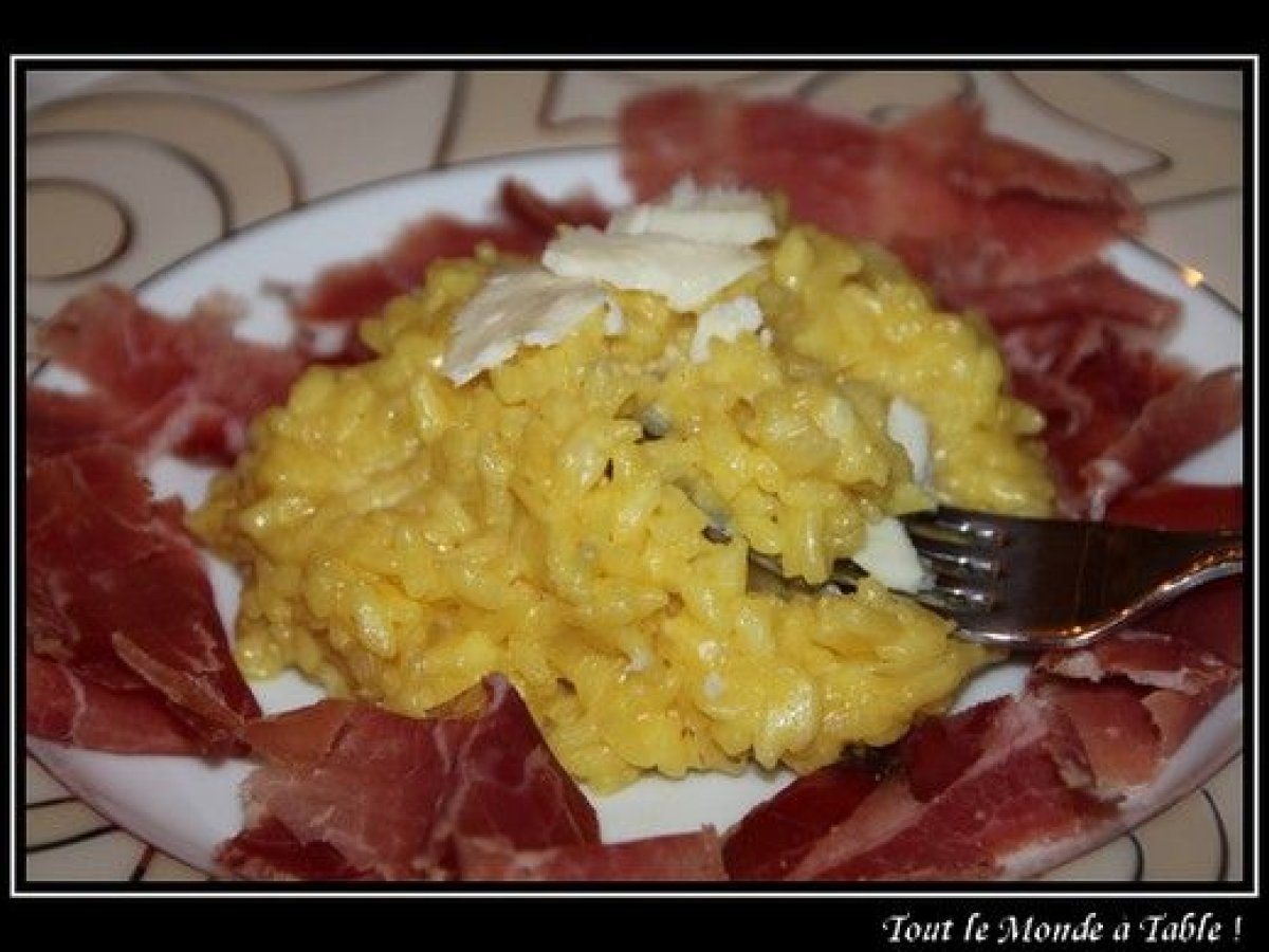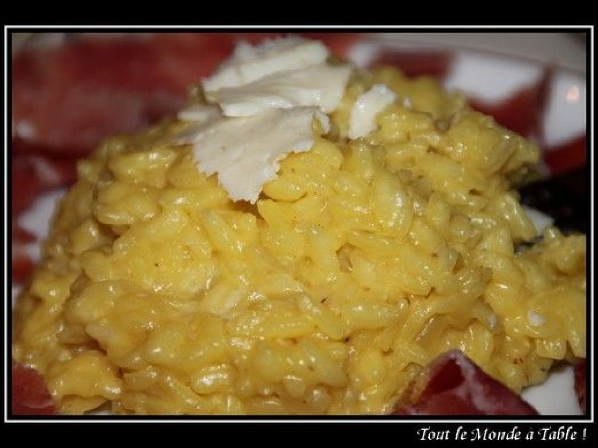 Risotto au safran et pecorino , copeaux de speck votez maintenant PrécédentSuivant Platfacile25 min Envoyer cette recette à un ami Imprimer cette page Poser une question à l'auteur Publier votre photo de cette recette Ingrédients 4 350 g de riz carnaroli 1 oignon 1 litre de bouillon de volaille chaud 1 verre de vin blanc sec 60 g parmesan fraîchement râpé pecorino QS 2 pistils de safran + 1 dose de safran en poudre poivre 2 cuillères à soupe d'huile d'olive