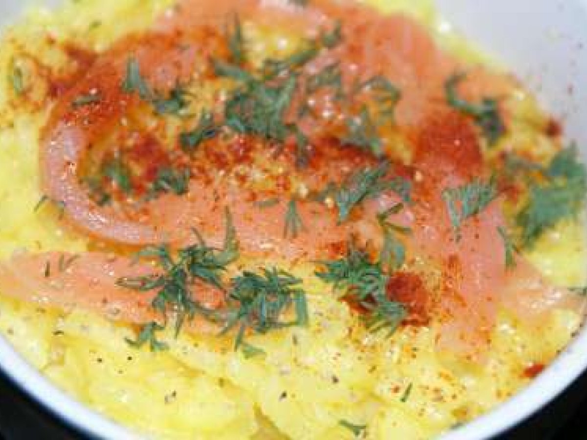 Risotto au safran et saumon fumé Platmoyen40 min Envoyer cette recette à un ami Imprimer cette page Poser une question à l'auteur Publier votre photo de cette recette Un réel délice Ingrédients 4 3 verres de 20 cl de riz Arborio 4 tranches de saumon fumé 1 litre de court-bouillon de poisson 2 échalotes 1 filet de crème liquide Une noisette de beurre De l'huile d'arachide Une dose de safran Quelques feuilles de menthe Aneth Paprika Sel Poivre