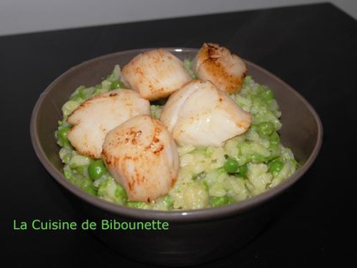 Risotto de aux saint jacques et aux petits pois à la menthe (7pts)