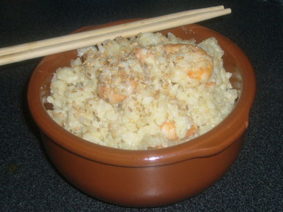 Risotto de crevettes, coco, gingembre et sésame doré Platfacile35 min934 Kcal Envoyer cette recette à un ami Imprimer cette page Poser une question à l'auteur Publier votre photo de cette recette Ingrédients 4 400 g de crevettes roses 60/80 250 g de riz à risotto ( arborio) ou à défaut du riz rond 1/2 carotte 20 cl d'huile d'arachide 40 cl de bouillon de volaille 25 cl de lait de coco 4 cuillères à café de sésame doré 3 cuillères à café de curry 4 cuillères à café de gingembre 15 cl de nuoc mam Coût estimé: 12.05Euros€ (3.01€/part)