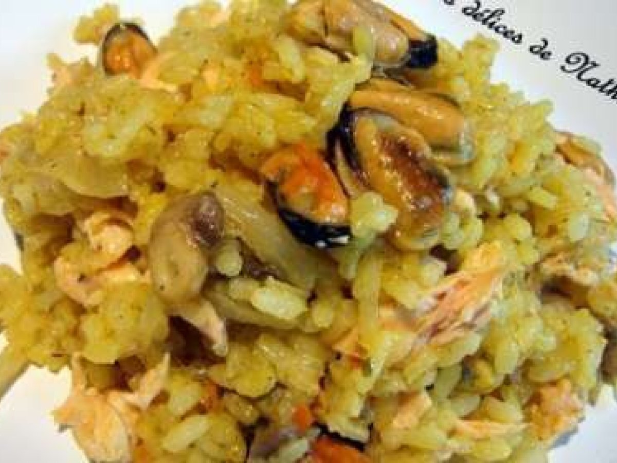 Risotto de la mer au safran Platmoyen35 min8919 Kcal Envoyer cette recette à un ami Imprimer cette page Poser une question à l'auteur Publier votre photo de cette recette Ingrédients 6 250 de riz rond 1 gros oignon Huile d'olive 200 g de moules (Picard) 2 darnes de saumon 250 g de champignons de Paris 50 cl d'eau bouillante 2 pincées de safran 25 cl de vin blancrisotto mer 3 1 c à soupe de fumet de poisson Aneth Jus de 2 citrons Sel, poivre