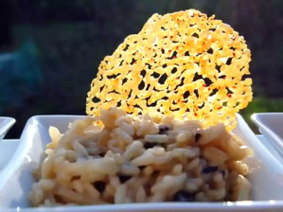 Risotto façon fondue savoyarde et sa tuile croustillante au gruyère pimenté