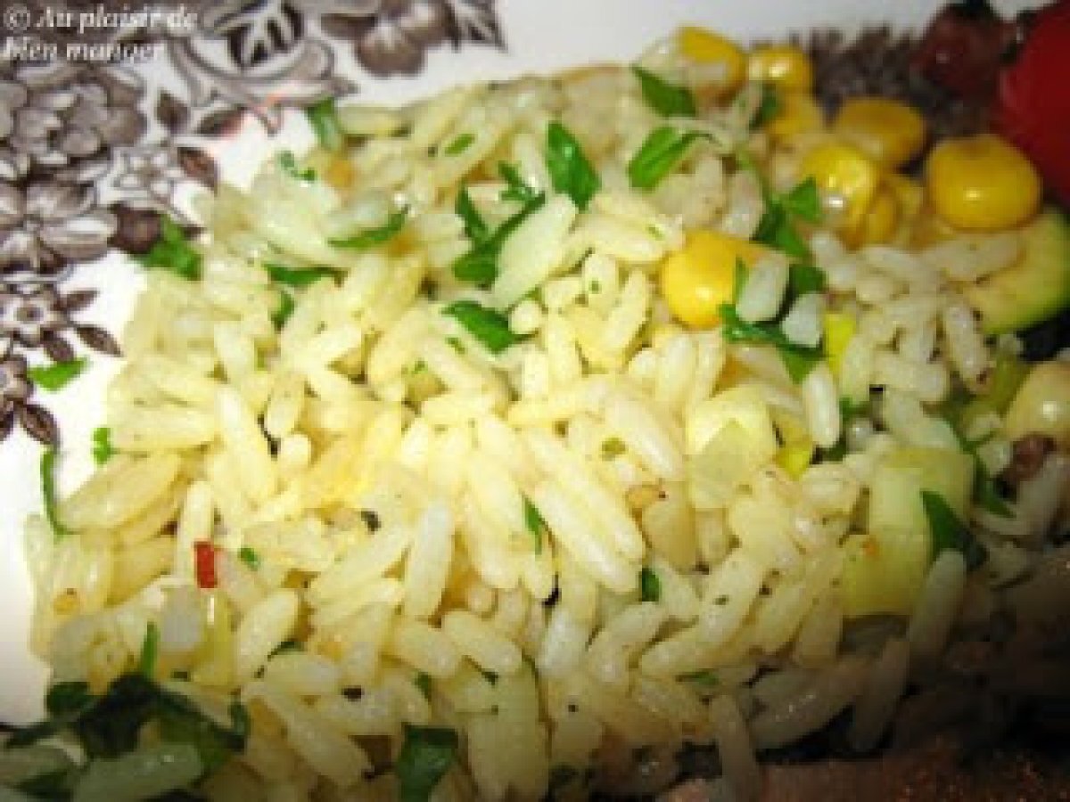 Riz au persil et à la coriandre Platfacile40 min238 Kcal Envoyer cette recette à un ami Imprimer cette page Poser une question à l'auteur Publier votre photo de cette recette Ingrédients 4 1 1/2 tasse de bouillon de poulet réduit en sel ou d'eau, 1 tasse de riz à grain long 1/4 cuillère à thé de sel 1/3 tasse chacun de persil frais, haché et de coriandre fraîche, 1 oignon vert haché finement, 1 gousse d'ail hachée finement 1 cuillère à table d'huile d'olive. Coût estimé: 1.65Euros€ (0.41€/part)