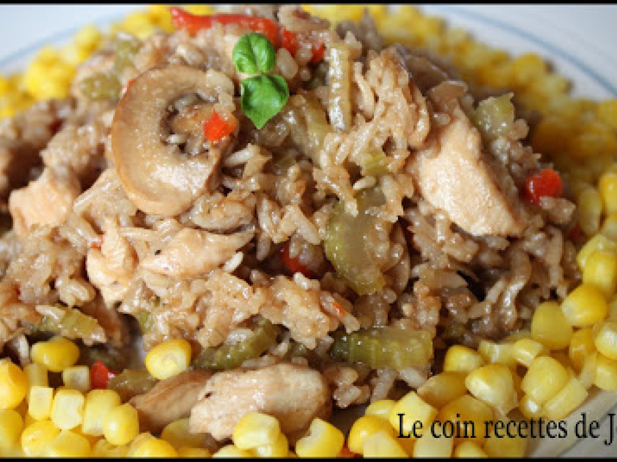 Riz au poulet et légumes au four Platfacile1 h 21 m946 Kcal Envoyer cette recette à un ami Imprimer cette page Poser une question à l'auteur Publier votre photo de cette recette Ingrédients 4 2 tasses de riz à grains longs 3 1/2 tasses d'eau 1/4 tasse de sauce soya 1 enveloppe de soupe à l'oignon 1 oignon, en dés 3 branches céleri, en biseau 1 piment rouge, en dés 225 g de champignons blancs, frais tranchés 2 tasses de poulet cuit, en dés 1 pincée sel 1/2 tasse d'huile de canola Coût estimé: 6.83Euros€ (1.71€/part)