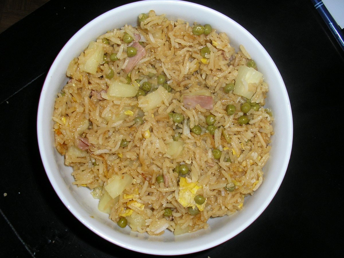 Riz cantonnais sucré/salé Platfacile30 min609 Kcal Envoyer cette recette à un ami Imprimer cette page Poser une question à l'auteur Publier votre photo de cette recette Ingrédients 4 500g de riz basmati 3 oeufs 4 tranches de jambon (ou 10 bâtonnets de surimi) 100g de petits pois congelés 6 tranches d'ananas 3 cs de sauce soja une noix de beurre le sirop de l'ananas en boite (facultatif) Coût estimé: 8.13Euros€ (2.03€/part)