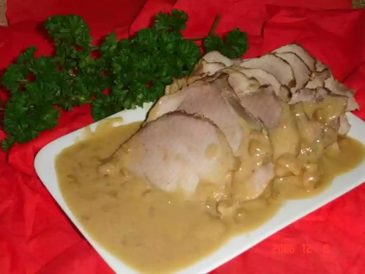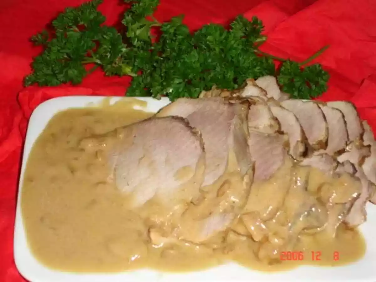 Roti au jambon à la moutarde et crème