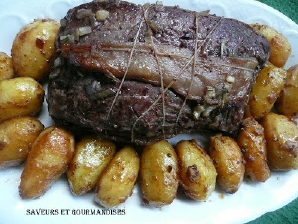 Roti de boeuf, pommes fondantes. PrécédentSuivant Platfacile1 h 5 m146 Kcal Envoyer cette recette à un ami Imprimer cette page Poser une question à l'auteur Publier votre photo de cette recette Ingrédients 6 1 rôti de boeuf d'un kg (déjà prêt ). 20 g de beurre ou d'huile. Jus de rôti : 1 carotte 1 oignon Thym et laurier 20 g de fond brun ( ou 1 cube) Garniture : 1 kg (ou plus) de pommes grenailles