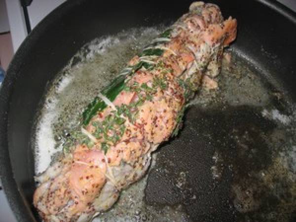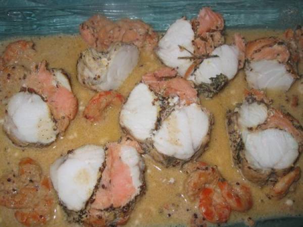 Rôti de lotte farci au saumon fumé PrécédentSuivant Platmoyen1 h 5 m Envoyer cette recette à un ami Imprimer cette page Poser une question à l'auteur Publier votre photo de cette recette C'est un peu salé, mais sinon c'était vraiment délicieux. Ingrédients 3 1 queue de lotte de 700 g 75 g de saumon fumé 150 g de crevettes roses 10 cl de vin blanc 50 g de beurre 2 grosses cuillerées à soupe bombées de crème fraîche 2 feuilles de laurier 4 branches de thym moutarde à l'ancienne poivre
