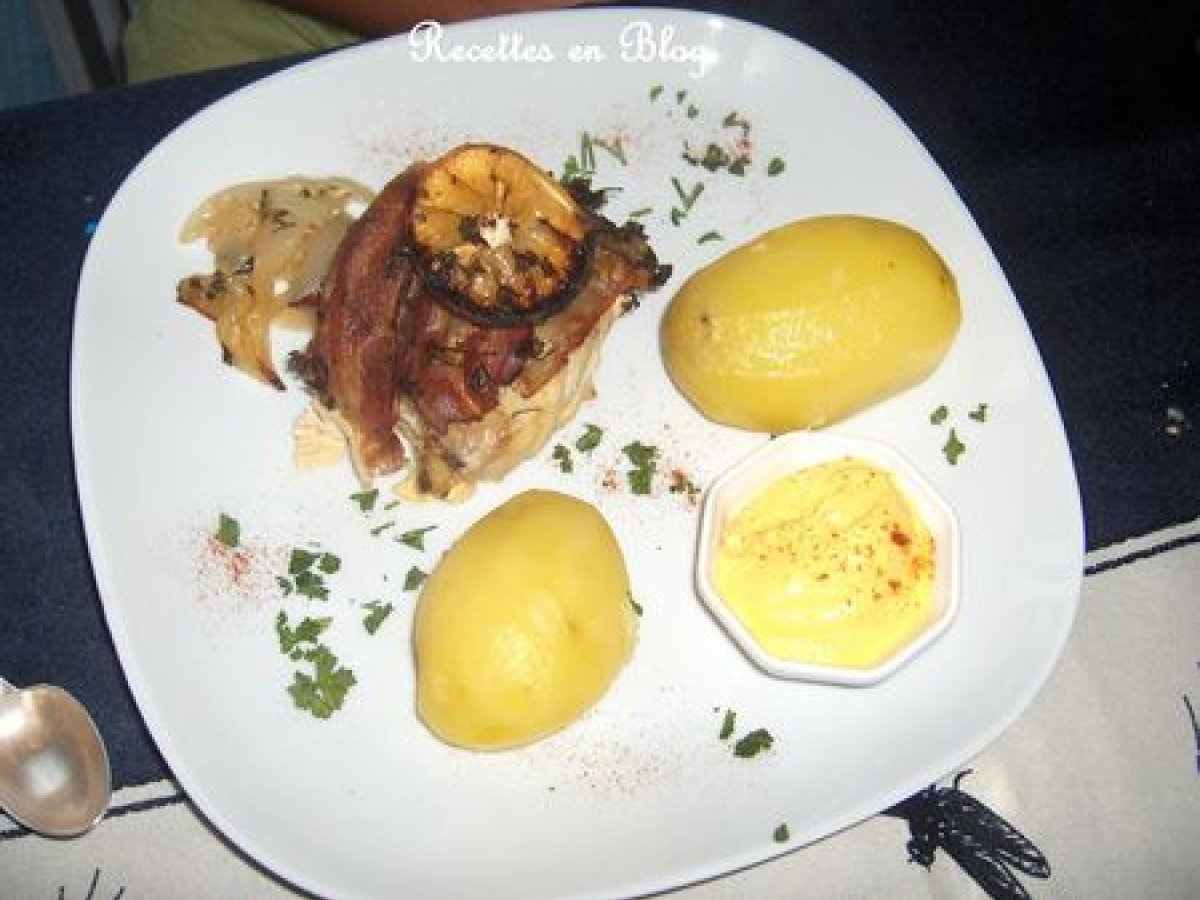 Roti de lotte sauce safranee a la creme et au citron PrécédentSuivant Platfacile1 h 5 m Envoyer cette recette à un ami Imprimer cette page Poser une question à l'auteur Publier votre photo de cette recette Ingrédients 4 1 queue de lotte 6 tranches de lard fumé 1 citron jaune le jus d'un demi citron jaune 1 échalotte 1 dose de safran 4 cuillères à soupe de crème allégée sel poivre 12 pommes de terre 3 cuillères à soupe d'huile d'olives 1/2 bouquet de persil 1 gros oignon