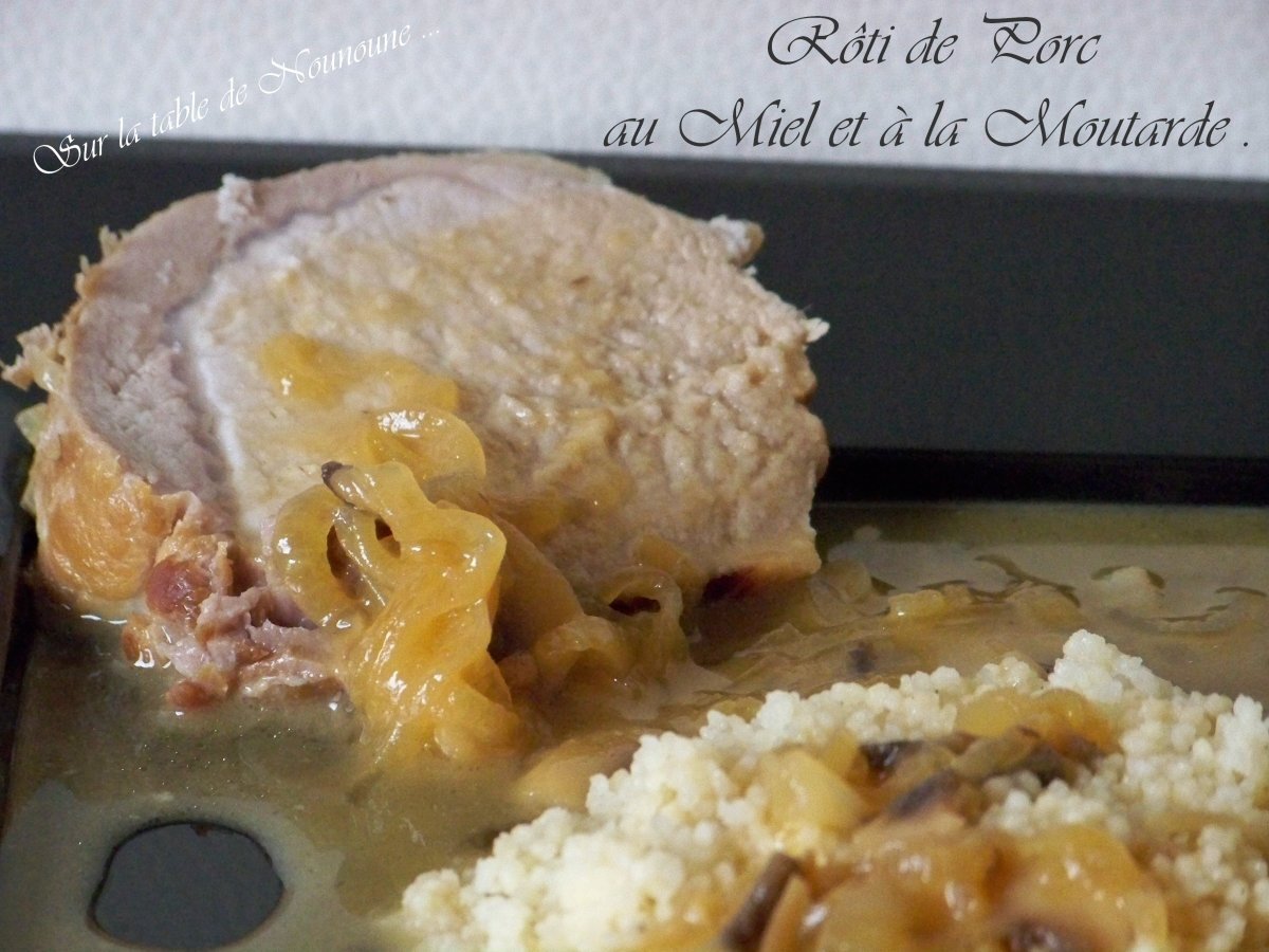 Rôti de porc à la moutarde et au miel Platmoyen1 h 15 m Envoyer cette recette à un ami Imprimer cette page Poser une question à l'auteur Publier votre photo de cette recette Ingrédients 4 1 rôti de porc 2 oignons une 10aine de champignons de Paris frais Huile 2 CAS de moutarde 4 à 5 CAS de Miel 1/4 de litre de bouillon de volaille