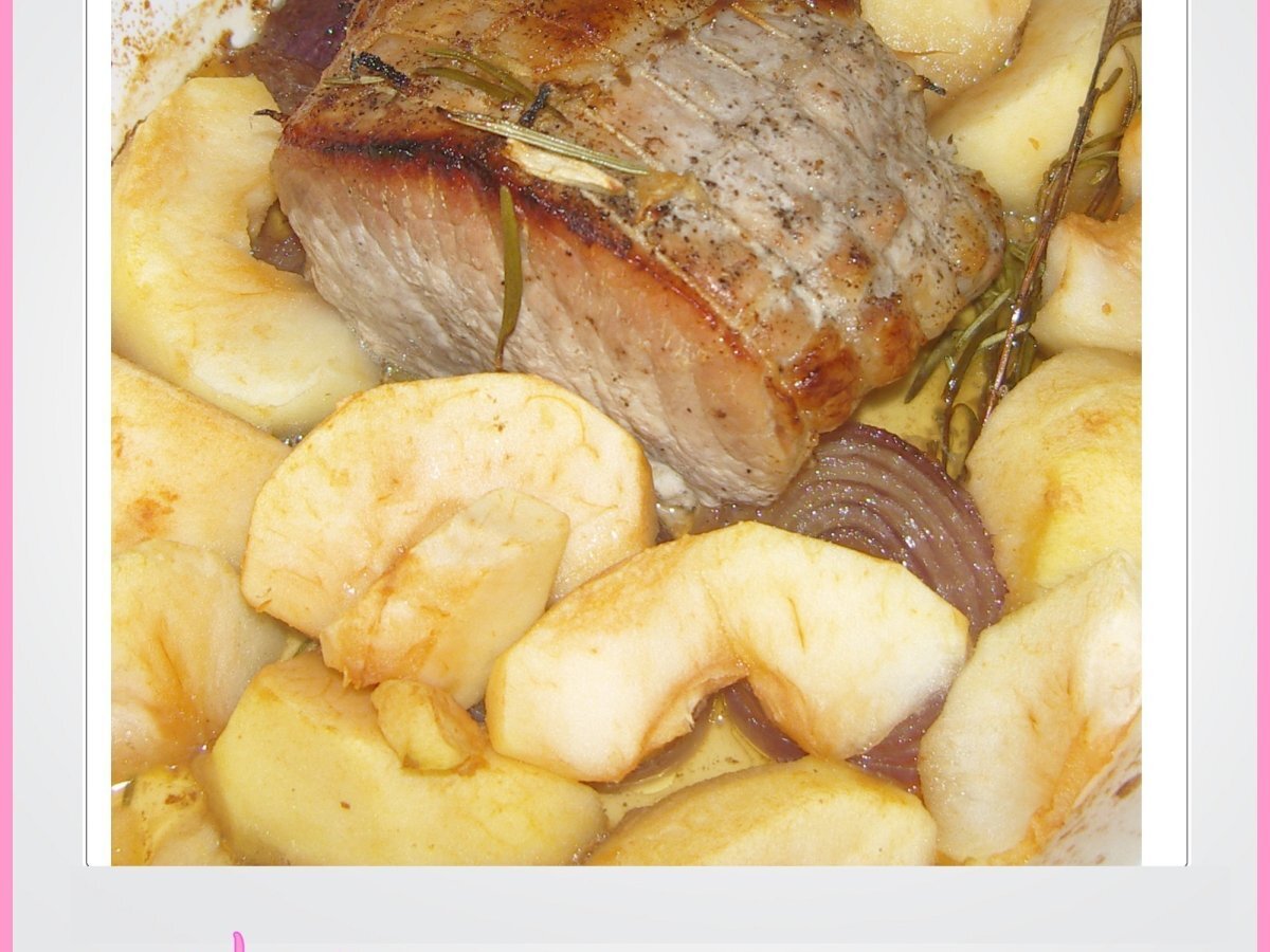 Rôti de porc aux pommes Platmoyen1 h 5 m1193 Kcal Envoyer cette recette à un ami Imprimer cette page Poser une question à l'auteur Publier votre photo de cette recette Ingrédients 2 1 demi-rôti de porc (j'ai congelé l'autre moitié) [J'ai choisi dans le filet] 2 pommes reinettes canada grise 3 branches de romarin du jardin 1 gros oignon rouge 1 càs de miel sel et poivre 4 noix de beurre (doux. Sinon, éviter de saler) 1 verre d'eau Coût estimé: 10.68Euros€ (5.34€/part)