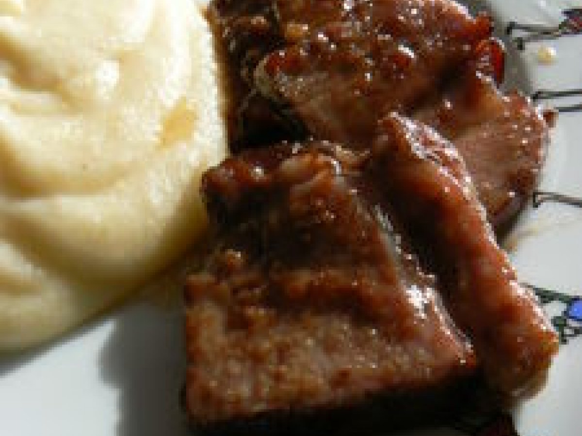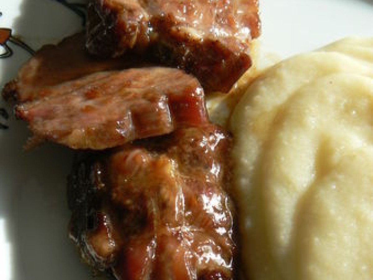 Rôti de porc confit au sirop d'érable votez maintenant PrécédentSuivant Platfacile3 h 15 m Envoyer cette recette à un ami Imprimer cette page Poser une question à l'auteur Publier votre photo de cette recette Ingrédients 4 Rôti de Porc au sirop d'érable : 1 petit rôti de porc environ 500 g 100 g de sirop d'érable sel poivre Pour la purée de céleri : 1 boule de céleri rave 2 pommes de terres moyennes 1 cube de bouillon de légumes 25 g de beurre sel et poivre