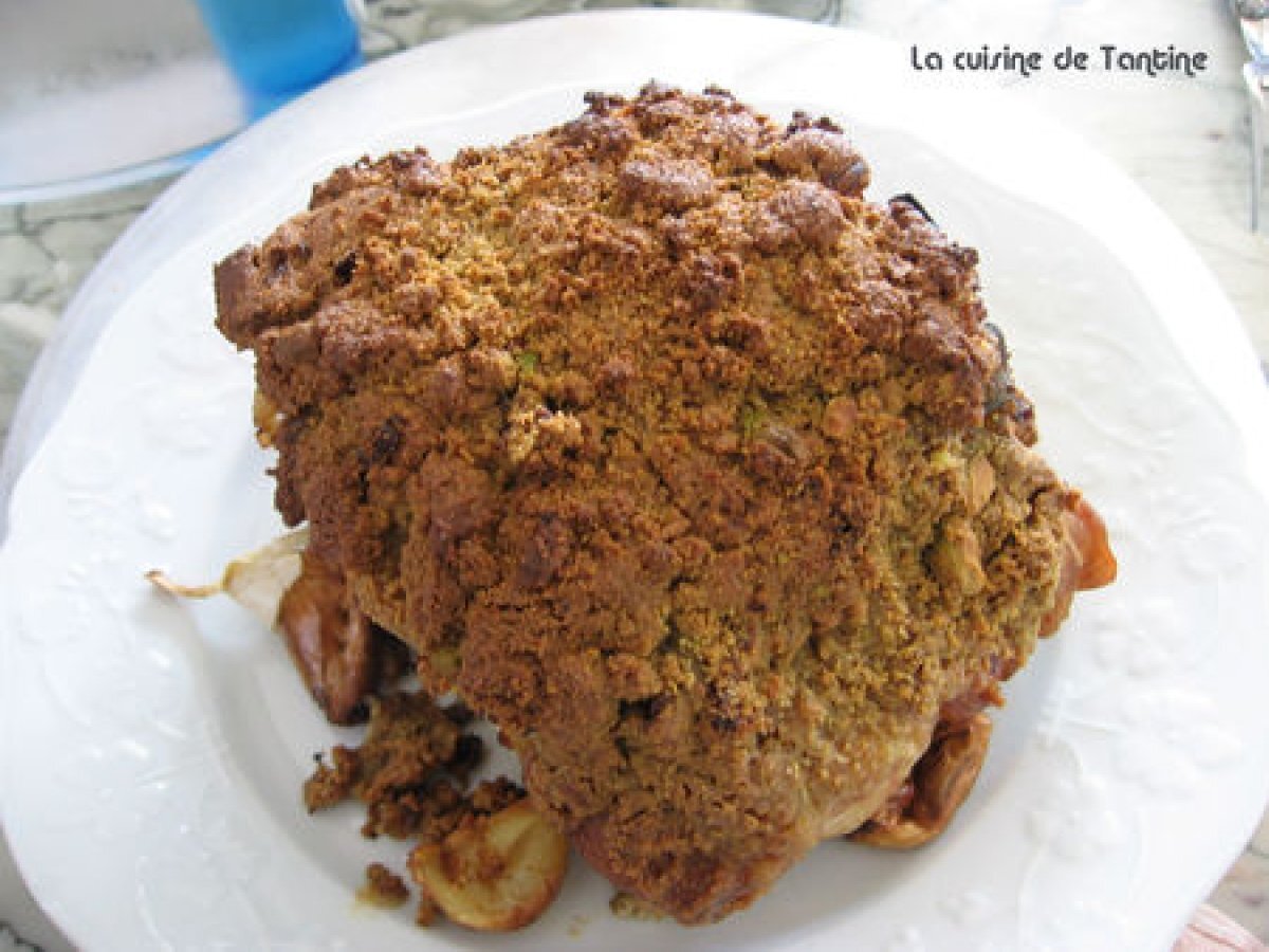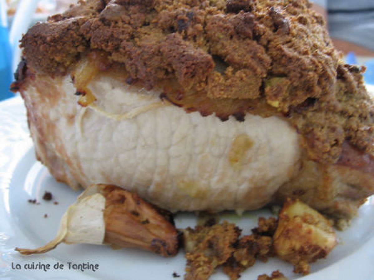 Rôti de porc en croûte de pistache votez maintenant PrécédentSuivant Platfacile1 h 15 m Envoyer cette recette à un ami Imprimer cette page Poser une question à l'auteur Publier votre photo de cette recette Ingrédients 6 1 rôti de porc d'environ 1 kg non bardé 50 g de pistaches décortiquées 50 g de chapelure 2 oignons 4 gousses d'ail 1 échalote 6 feuilles de sauge 40 g de beurre 3 cuillères à soupe d'huile d'olive. Sel poivre