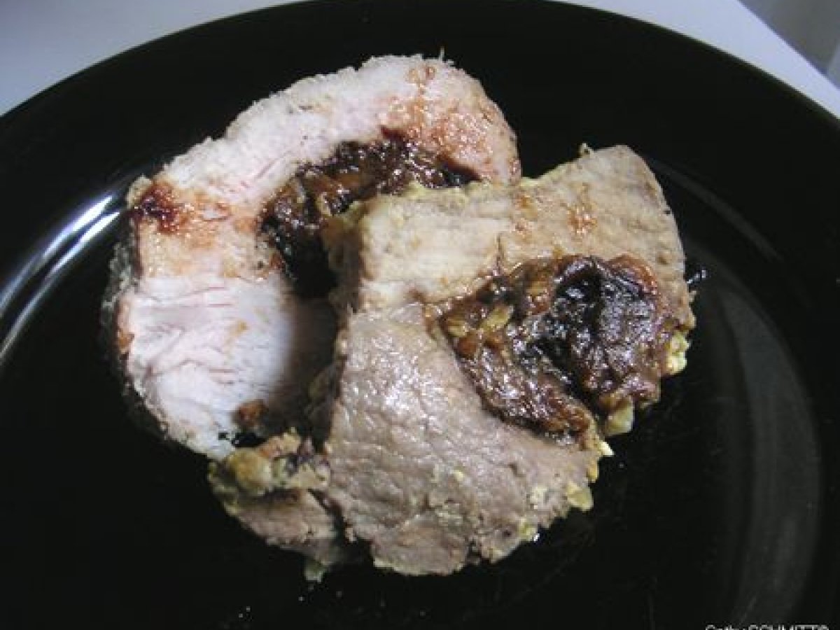 Rôti de porc farci aux pruneaux votez maintenant Platfacile45 min Envoyer cette recette à un ami Imprimer cette page Poser une question à l'auteur Publier votre photo de cette recette Ingrédients 2 1 rôti de porc de 650 g 100 à 150 g de pruneaux Moutarde douce 1 gros oignon 250 g de champignons de Paris nettoyés émincés Lait 1/2 écrémé 1/2 cube de bouillon de poule dégraissé Sel, poivre, graines de pavot, 1 feuille de laurier