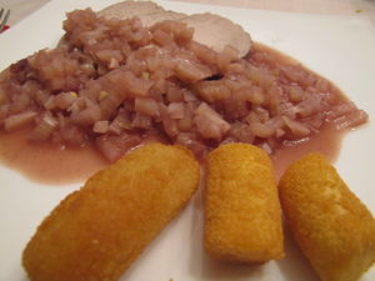 Rôti de porc, sauce au fenouil et à l'orange PrécédentSuivant Platfacile1 h 15 m Envoyer cette recette à un ami Imprimer cette page Poser une question à l'auteur Publier votre photo de cette recette Ingrédients 4 1 Rôti de porc au carré 1 fenouil Le jus de 2 oranges 1 échalote 200 ml de bouillon de viande dégraissé 2 dl de vin rouge 2 cuillères à café de beurre 6 grains de coriandre Sel et poivre 1 cuillère à soupe de fécule de maïs pour lier la sauce