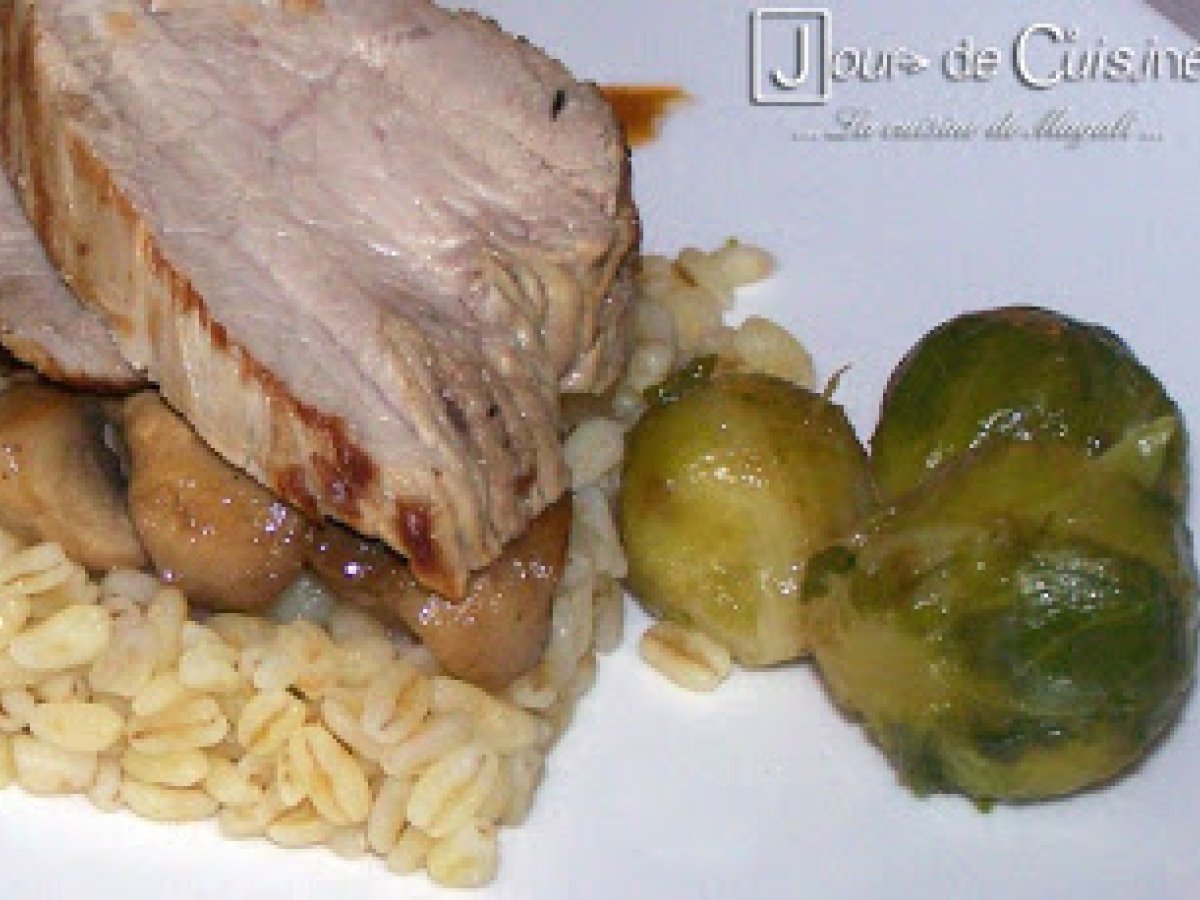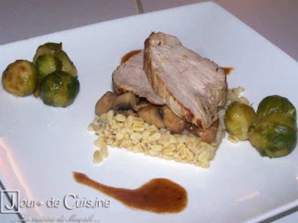 Rôti de veau au jus, choux de bruxelles, champignons et blé votez maintenant PrécédentSuivant Platfacile50 min Envoyer cette recette à un ami Imprimer cette page Poser une question à l'auteur Publier votre photo de cette recette Ingrédients 6 1,2 kg de quasi de veau 4 gousses d'ail 50 g de beurre 15 cl de fond blanc 1 branche de thym Huile d'olive Choux de Bruxelles Champignons de Paris Blé