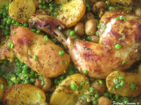 Il y a des jours où on fait à manger avec ce qu'on a dans le frigo, c'est notre version à nous de la boîte mystère ;-) Alors dans mon frigo aujourd'hui en plus du poulet : des pommes de terre, des champignons et des petits pois. Vous l'aurez compris, il vous suffit d'ajouter à cette recette les ingrédients de votre propre frigo : c'est de la cuisine écologique :-D