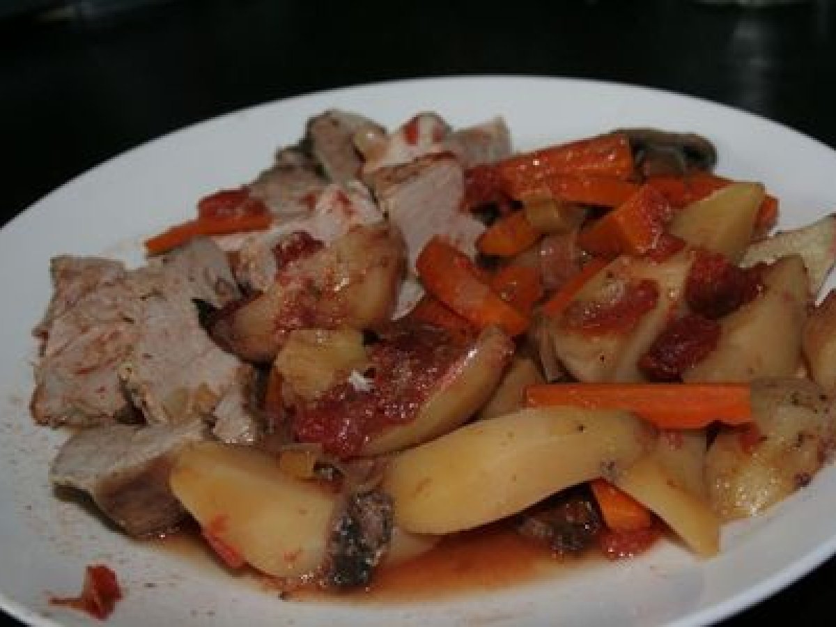 - Couper les poireaux en rondelles, les carottes en bâtonnets, les champi en lamelles, les pommes de terre en quartiers, verser dans la mijoteuse, saler, poivrer.