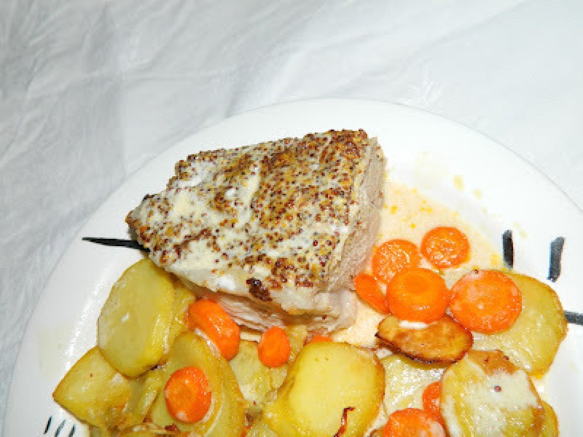 Rouelle de porc en croute moutardé et sa sauce au houblon.