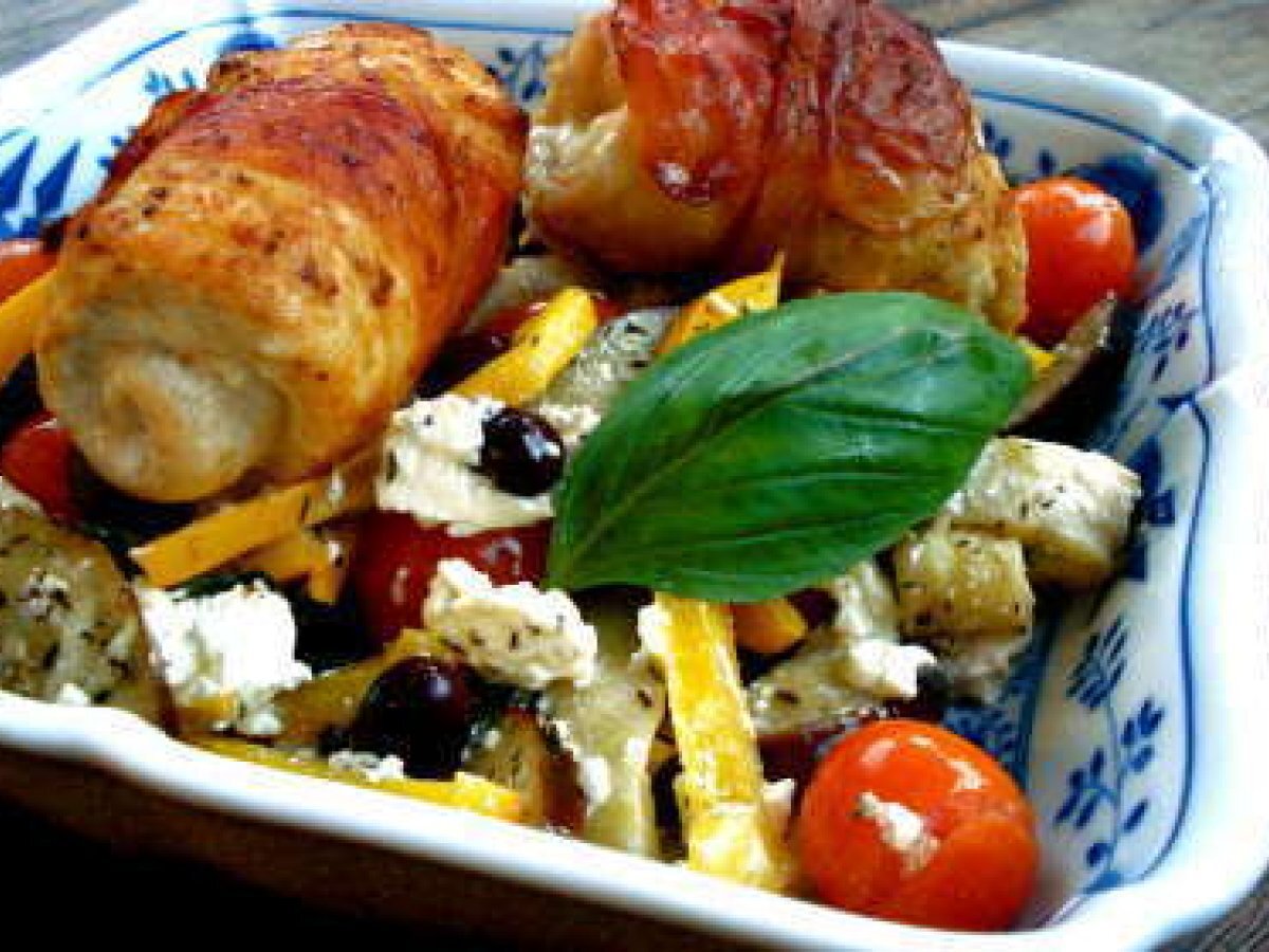 J'ai envie de couleurs dans mon assiette en ce moment... Alors j'ai fait des légumes à la fêta, basilic & thym en papillote avec des roulades de poulets. En plus, les roulades coupées en deux c'est très jolie... malheureusement il n'y a pas de photo pour vous montrer.