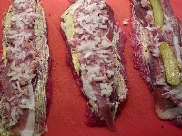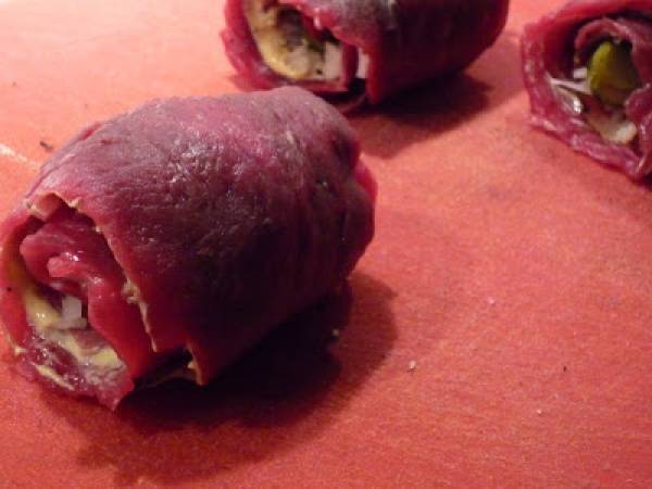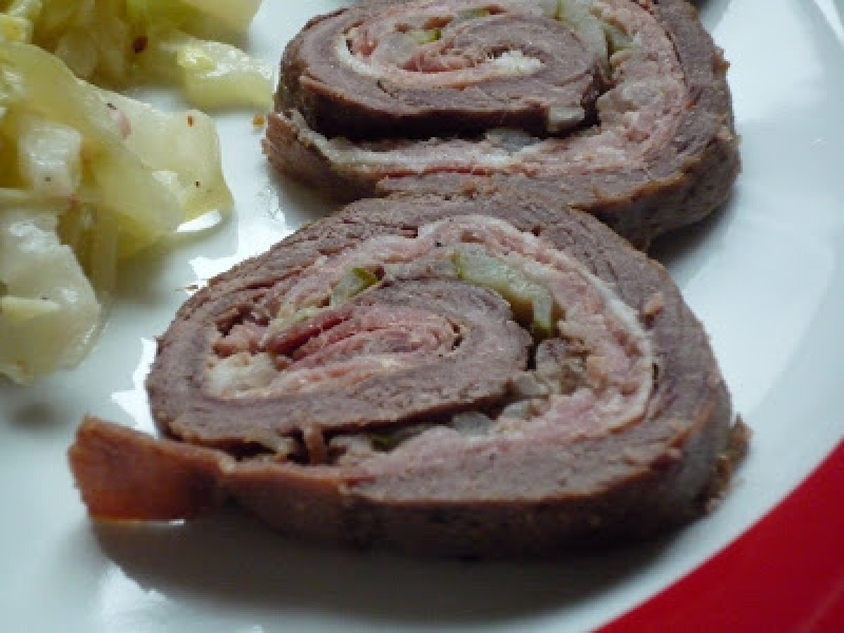 Rouleau de boeuf - rinder-roulade PrécédentSuivant Platfacile3 h 20 m Envoyer cette recette à un ami Imprimer cette page Poser une question à l'auteur Publier votre photo de cette recette Ingrédients 4 de boeuf ( faux filet, rumsteak....) moutarde lard jambon de Bayonne ou speck la chair à saucisse des oignons hachés des cornichons aigre-doux des tomates séchés des câpres du fromage Coût estimé: 5.21Euros€ (1.3€/part)