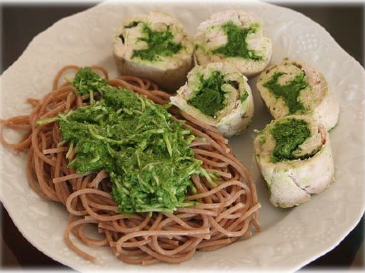 Roulés de poulet au pesto d'épinard ou comment mettre un homme dans sa pôche ! votez maintenant PrécédentSuivant Platfacile40 min Envoyer cette recette à un ami Imprimer cette page Poser une question à l'auteur Publier votre photo de cette recette Ingrédients 2 Pour les roulés: 2 filets de poulet sel au céleri, poivre, estragon Pour le pesto d'épinard: 100 g de feuilles d'épinard 50 g d'amandes en poudre 1 cuillère à café d'ail 2 cuillères à soupe d'huile d'olive 50 g de parmesan râpé 1 cuillère à soupe de ricotta 1 cuillère à café de jus de citron sel, poivre, basilic