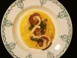 Ces roulés sont réalisés avec des blancs de poulet farcis aux abricots, dattes et lardons fumés. Ils sont cuits dans une casserole d'eau bouillante ce qui permet permet de garder une viande moelleuse.