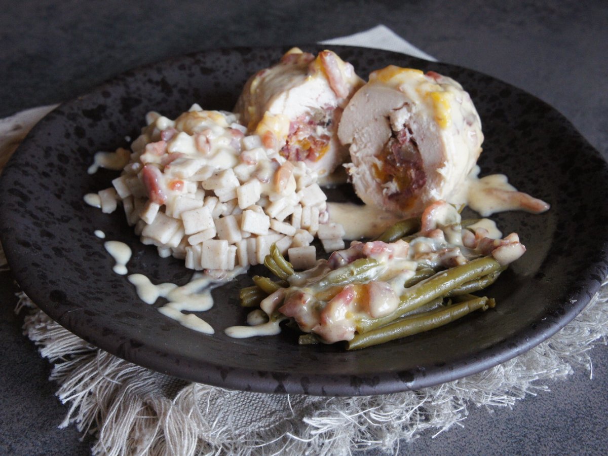 Roulés de poulet farcis aux lardons fumés et aux fruits secs