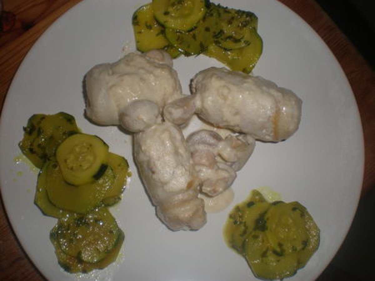 Pour changer des soles meunières, frites et compagnies, voici des roulés de soles pour une plus jolie présentation, accompagné d'une sauce à la crème et aux champignons et servi avec des courgettes sautées. Que du miam miam.