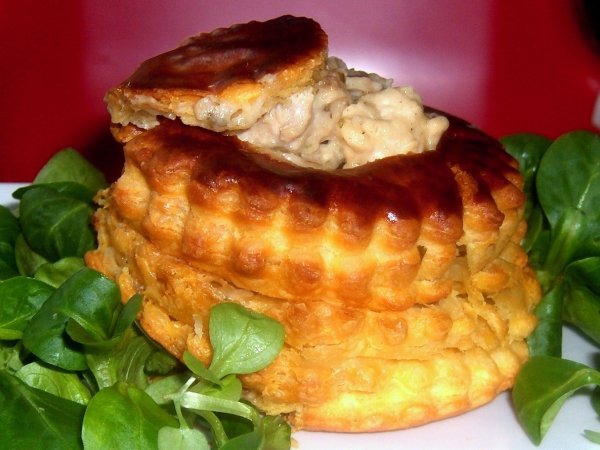 Royales bouchées à la reine et sa sauce forestière PrécédentSuivant Platmoyen1 heure555 Kcal Envoyer cette recette à un ami Imprimer cette page Poser une question à l'auteur Publier votre photo de cette recette Tellement savoureux ! Ingrédients 6 2 rouleaux de pâte feuilletée (pur beurre , c'est bien meilleur) Pour la dorure : 1 jaune d'oeuf (mélangé à 1 petite cuillère à soupe de lait, ou bien 5 croûtes feuilletées pour bouchées à la reine (en boulangerie ou rayon surgelé) 130 g de blanc de volaille 70 g d'épaule de veau (ou vous pouvez faire tout au poulet) 150 g de champignons forestiers (aux choix : bolets, pleurotes, cèpes, girolles et des champignons de paris, vous pouvez rester sur un seul type de champignon) 15 g de beurre 40 g d'échalotes 5 branches de persil (frais) 1 bonne gousse d'ail 2 cas de vinaigre de Xérès (petites cuillères) Sel et poivre Pour la sauce : 15 g de beurre 15 g de farine 120 g de crème épaisse (ou plus selon texture) ½ citron pressé (un petit) 1 bouquet garni (petit, ou un coeur de bouillon de légumes) 15cl du bouillon de légumes (voire 20cl) Noix de muscade 1 jaune d'oeuf (facultatif) Sel Poivre