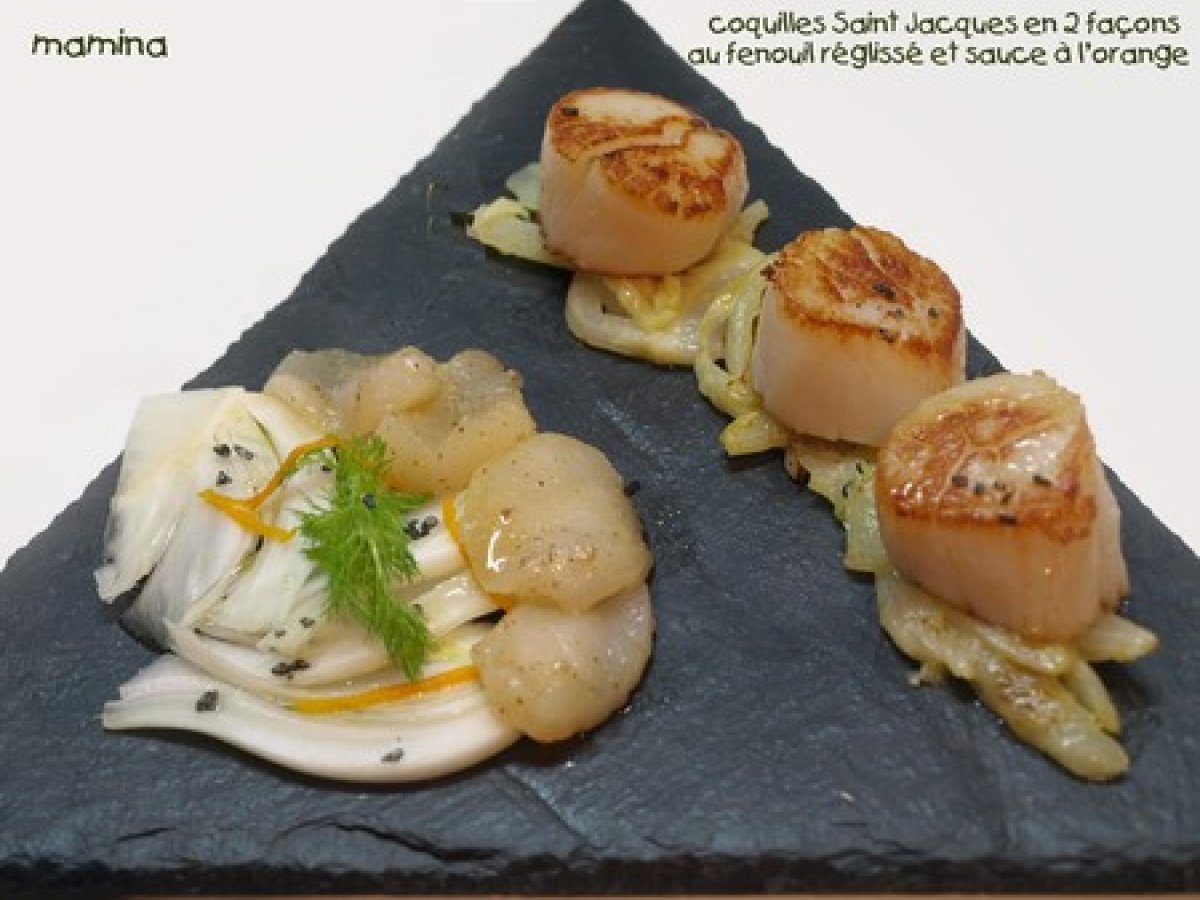 Saint jacques en 2 façons, fenouil, réglisse et réduction d'orange